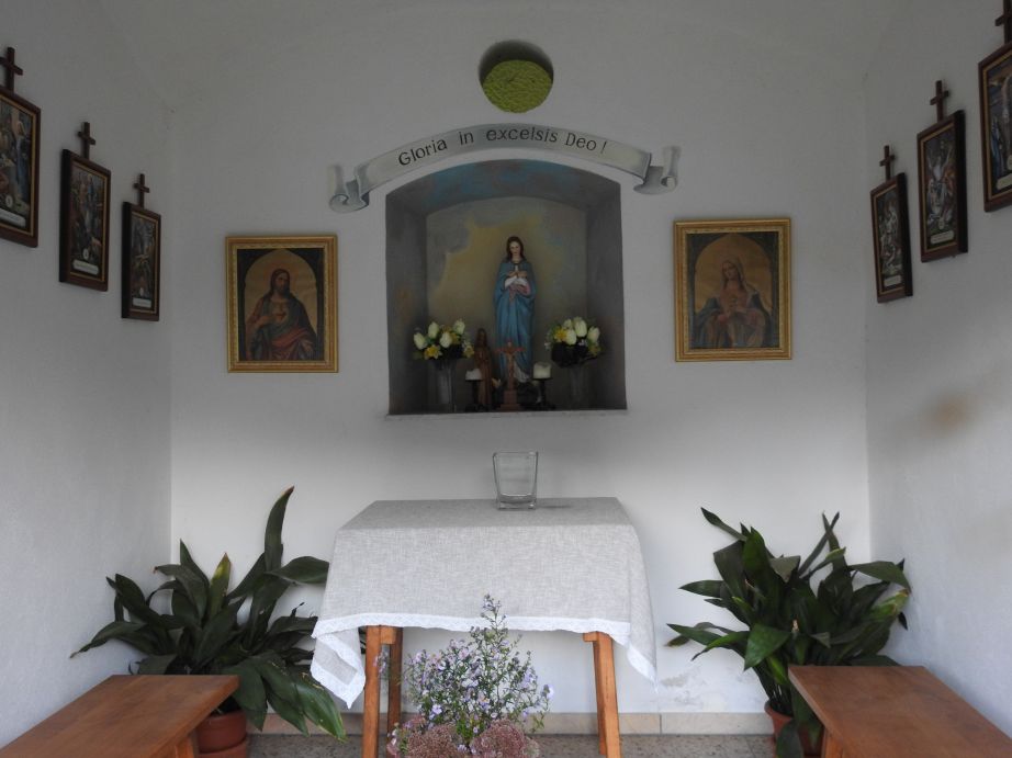Gegenüber der Beschreibung von P. Clemens hat sich die Kapelle verändert. Dieser hatte sie so beschrieben: “Sie besitzt einen Altar mit dem Bildnis der Gottesmutter mit dem Jesuskind.”