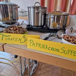 Nach der liebevoll gestalteten Wort-Gottes-Feier mit WGF-Leiterin Elisabeth Schöpf, traf man sich zum Suppen-Essen im Pfarrheim. Und wir hatten zweimal „volles Haus“, zuerst in der Kirche und dann im Pfarrheim! Über die vielen Gäste freuten sich der Pfarrgemeinderat und eine Firmgruppe mit ihren Begleiterinnen, die Suppe gekocht hatten und fleißig mitanpackten, sodass der Suppensonntag ein toller Erfolg wurde. Der Erlös kommt der KFB und der Pfarrcaritas zugute.